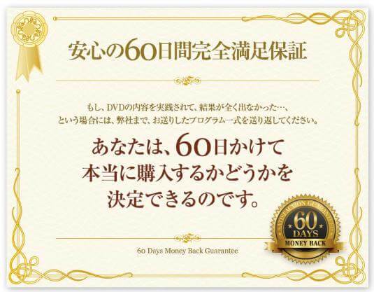 DVDをお手に取っていただき、今よりも技術的なスキルが上がらない、または実践したにも関わらず効果がみられないということであれば、弊社の商品配送日から60日以内(必着)であれば、無条件で全額返金させていただきます。