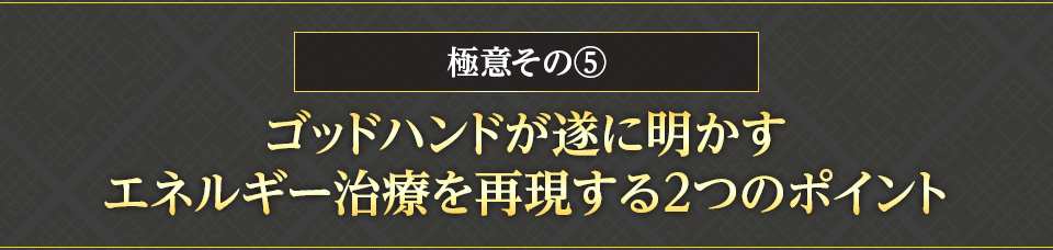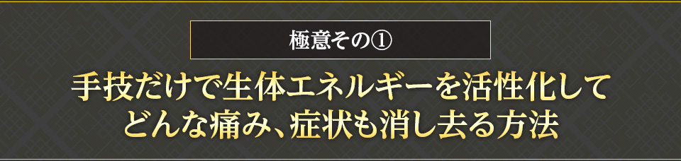 氣やエネルギーの修行をすることなく、あなたの治療にこの手技をプラスするだけで、高い治療効果を発揮することができるようになります。