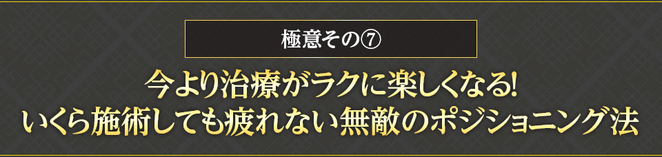 ビックリするほど短時間で効き目がスゴイ手技ですので、ぜひ明日から臨床でお使いください。