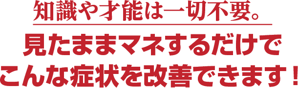 マネするだけで全身の筋硬結はもちろん、内臓疾患や自律神経失調、急性慢性問わずどんな症状にも効果を上げることができるのです。