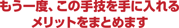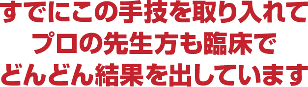 ぜひ、あなたの持ち球のひとつとしてこの手技も合わせてお持ちになってください。