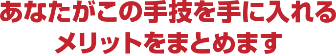 ぜひこの手技を手に入れて、患者さんの辛い症状を治してあげてください!