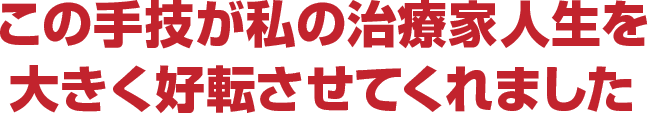 手技だけでそれ以上の治療効果を上げる方法で、より多くの患者さんを救ってあげることができます。 - もしあなたが、技術と経験を積んでいる整体師なら…