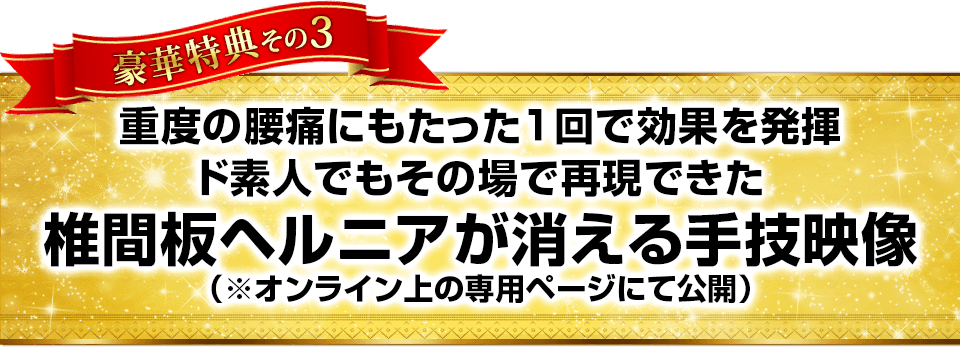 万が一、思っていた効果が出なかったときは遠慮なさらずに[全額返金満足保証]をお使いください。それも、まずはこの手技の全貌を確かめていただきたいからです。