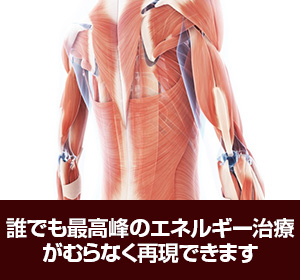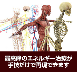“手技(徒手療法)によって再現ができるエネルギー治療”という、業界初とも言える手技です。