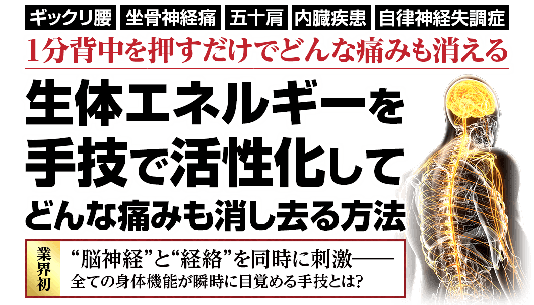 ここから早速、脳神経と経絡を同時に刺激する“手技で実現できるエネルギー治療”の秘密に迫ります。