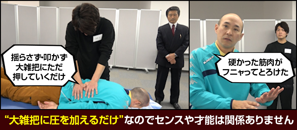 背中にやさしく圧をかけていくだけなので、センスや才能は関係ありません。