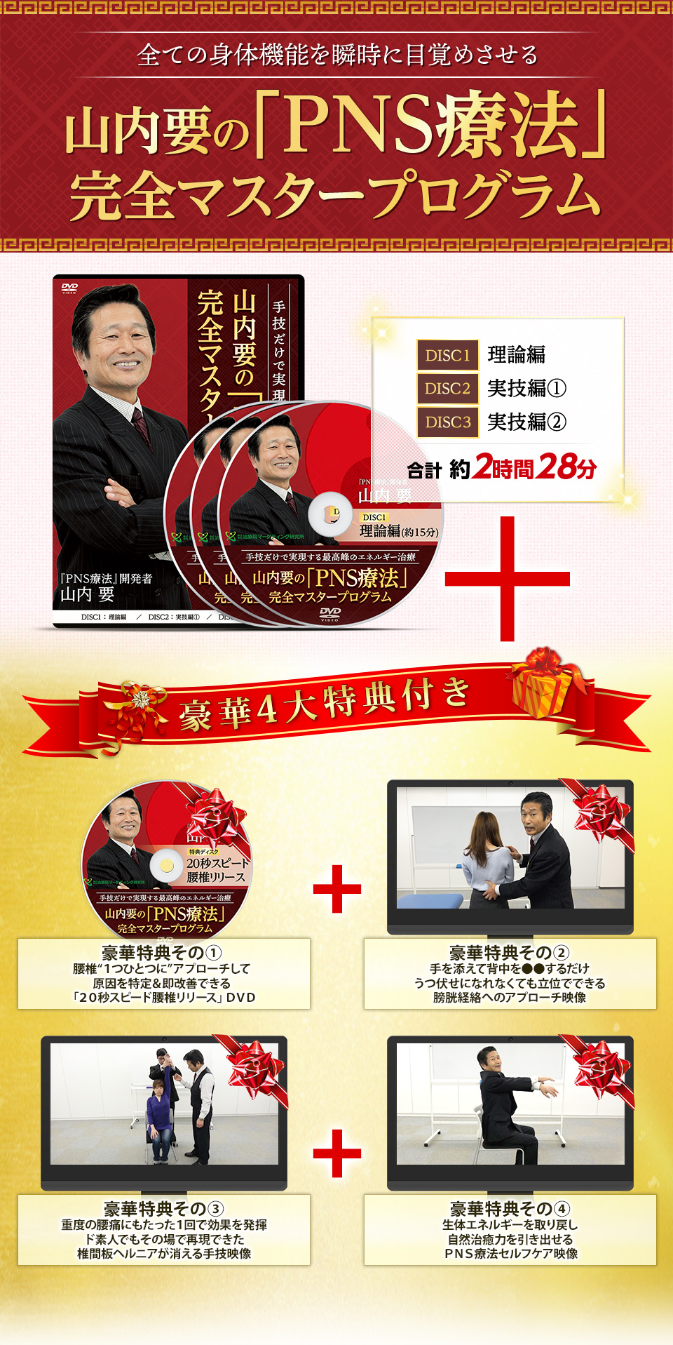 万が一、思っていた効果が出なかったときは遠慮なさらずに[全額返金満足保証]をお使いください。それも、まずはこの手技の全貌を確かめていただきたいからです。